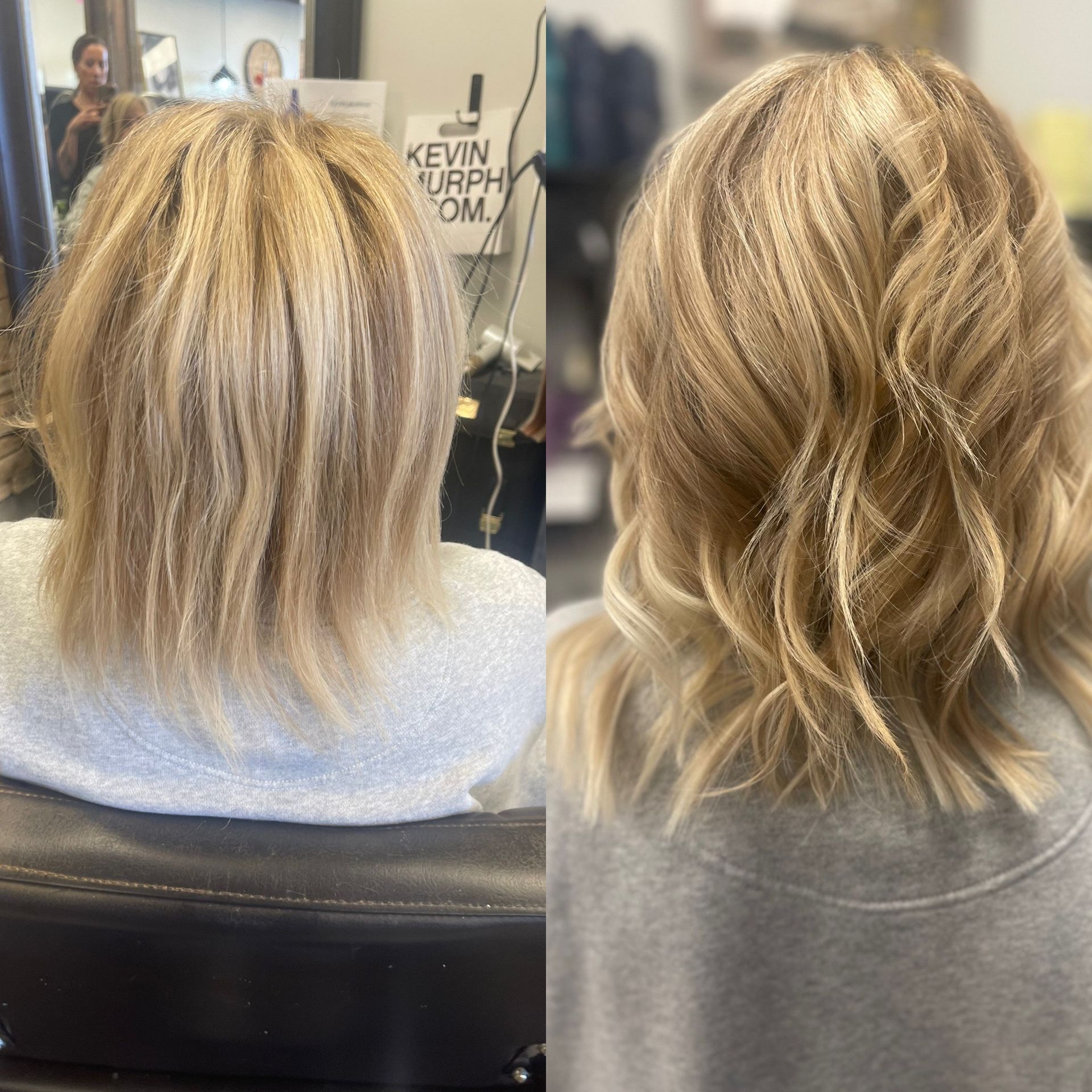 - Strategic Placement: Extensions are expertly applied to blend seamlessly with thinning or fine hair while enhancing overall volume.